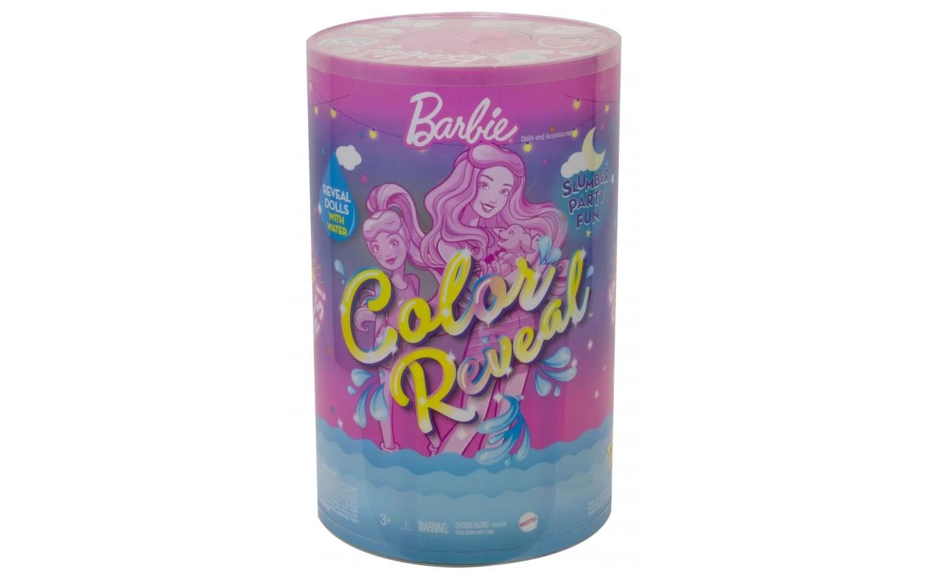• Met meer dan 50 verrassingen in één verpakking kunnen kinderen heerlijk wegdromen met de Barbie Color Reveal set tijdens een gezellig slaapfeestje met onder andere poppen, huisdieren, accessoires, een spel en nog veel meer!
