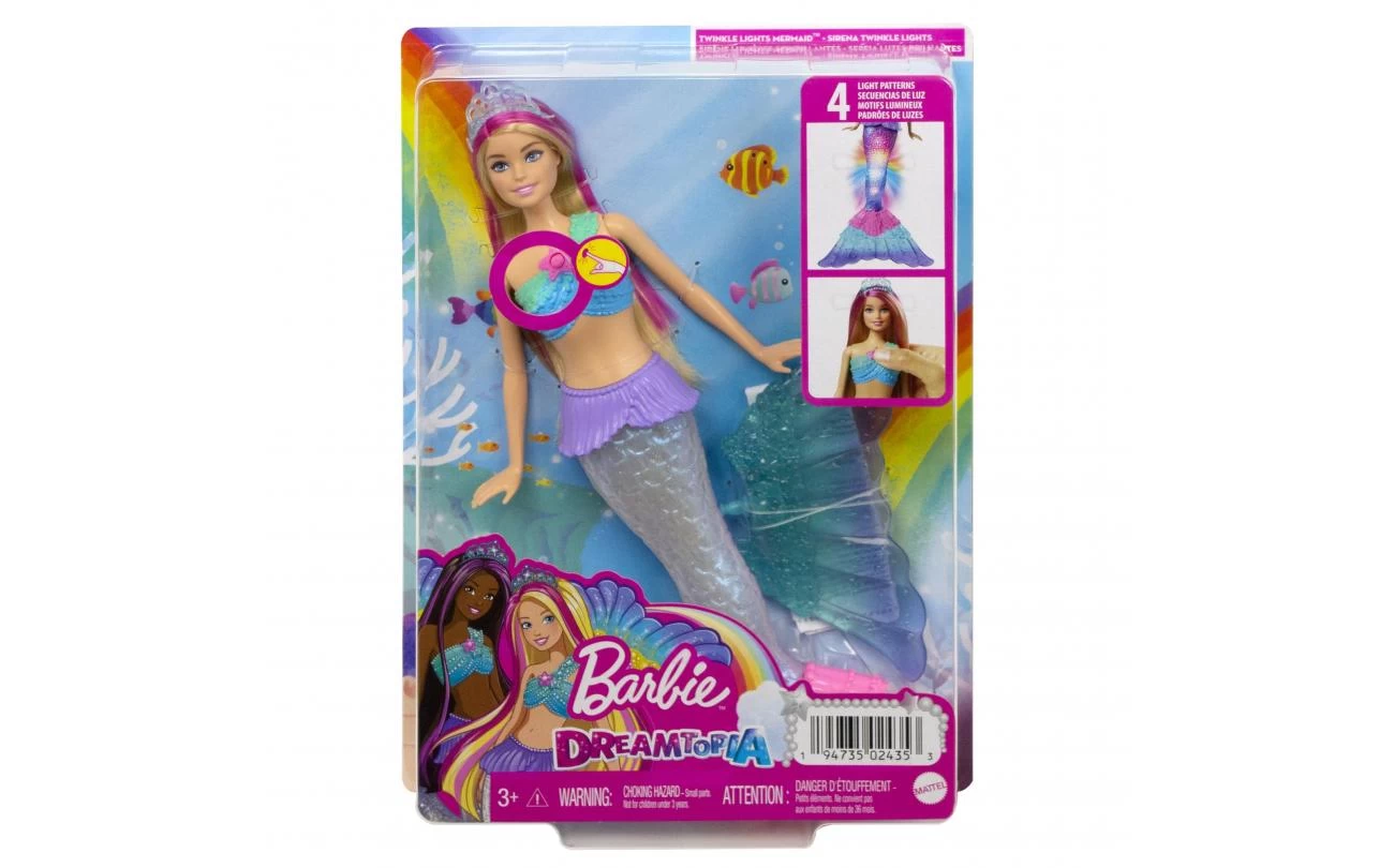 - Ga voor spetterend veel speelplezier met Barbie Dreamtopia Zeemeermin Pop met Twinkelende Lichtjes met een fantastische look en een magische lichtfunctie!