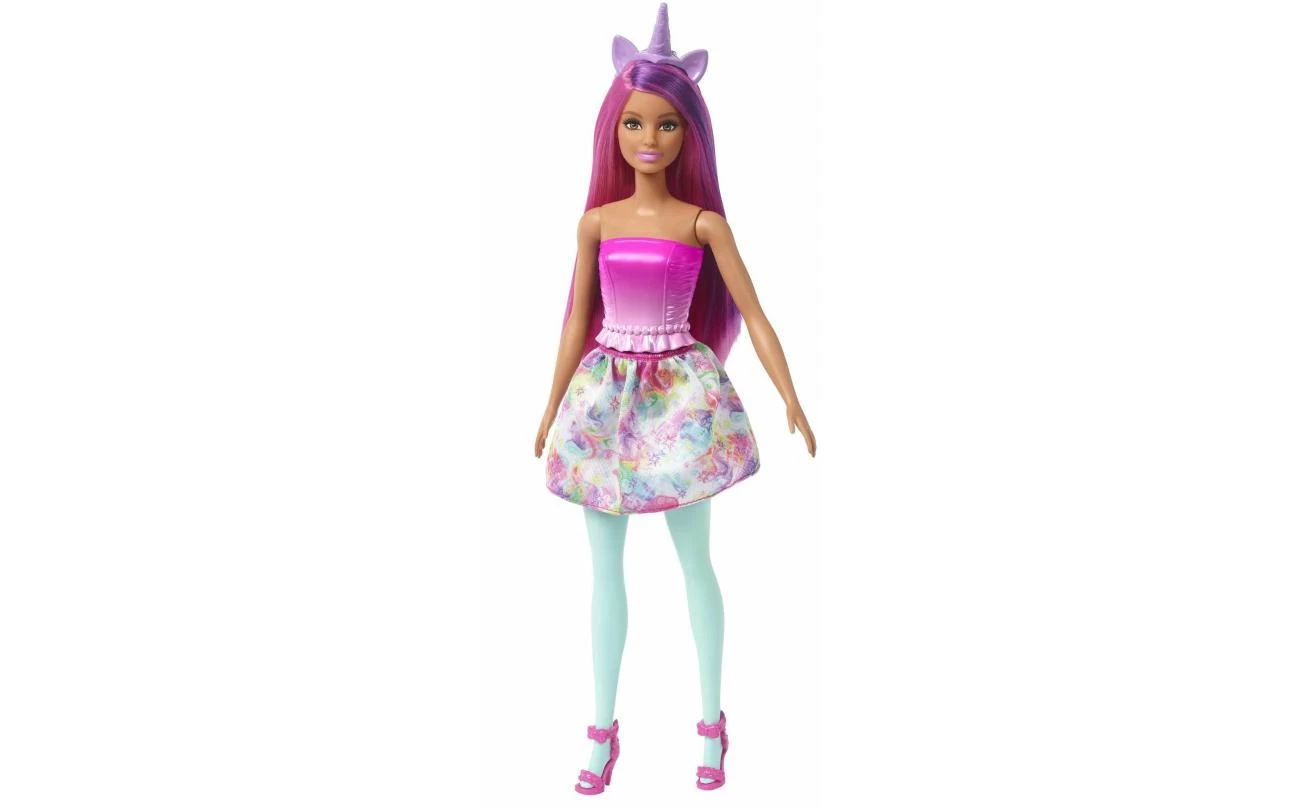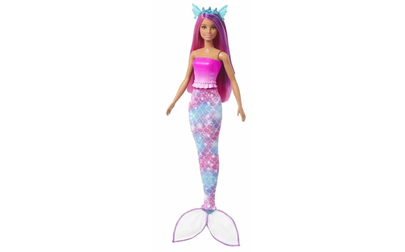 Deze Barbie verkleedpop voelt zich thuis op het land, in de zee en in de lucht! Ze heeft diverse outfits en accessoires, waaronder een zeemeerminstaart, twee rokken, haarbanden met een thema en een halsketting. De kleurrijke Barbie fantasieset bevat ook een babydraakje en een eenhoorntje, om nog meer leuke verhalen te kunnen bedenken. Pop kan niet los staan. Kleuren en versieringen kunnen variëren.