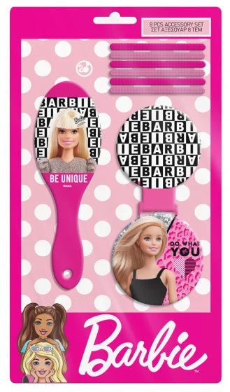 Met deze leuke haaraccessoireset van Barbie zorg je ervoor dat jouw haar of dat van jouw vriendinnetjes altijd mooi zit! In de set zit een borstel, een spiegel en zes haarspeldjes om allerlei mooie haarstijlen te kunnen maken.Â