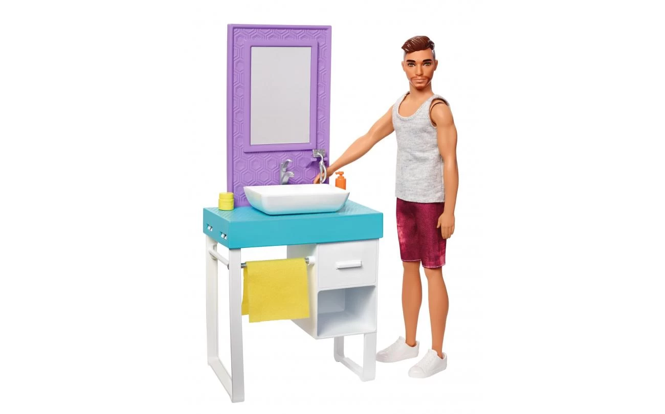 Ken™ pop is klaar om op te ruimen met deze Barbie® speeltoestellen – voorzien van poppenaccessoires met kamerthema’s en stories waarmee kinderen de actie zelf kunnen controleren! Kies uit een Ken™ poppenset met een leuk thema! Elke set bevat Ken™-pop, een poppenhuismeubel en kleinere accessoires, plus coole werkfuncties die de speeltijd verbeteren. De scheerpopenset van Ken™ maakt gebruik van een door water geactiveerde kleurwisseling om een baard te laten verschijnen en te laten verdwijnen; een sponsje en doekje laten kinderen zich onderdompelen in rollenspelplezier. De wasserette Ken doll™ helpt de dag weg te wassen met een wasmachine/droger met een werkknop en een draaiende beweging die kleine handen gemakkelijk kunnen gebruiken. Extra stukken inspireren rijkere verhalen; sommige accessoires hebben handgrepen die de pop kan vasthouden of zijn voorzien van een plug-and-play ontwerp dat helpt om ze op hun plaats te houden voor actief spelen en gemakkelijk schoon te maken! Jonge fantasieën zullen het leuk vinden om met Ken™-pop klusjes te klaren en te ontdekken dat als ze met Barbie® spelen, ze zich alles voorstellen wat ze kunnen worden! Inclusief Ken™-pop met mode en schoenen, grote accessoires en themastukken. Elke pop wordt afzonderlijk verkocht, afhankelijk van de beschikbaarheid. Poppen kunnen niet alleen staan. Kleuren en decoraties kunnen variëren.