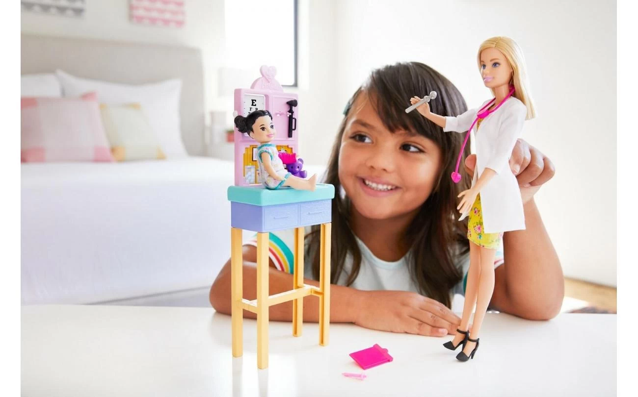 - Ontdek hoe het is om anderen te helpen en kinderen te verzorgen met de speelset Barbie de kinderarts!