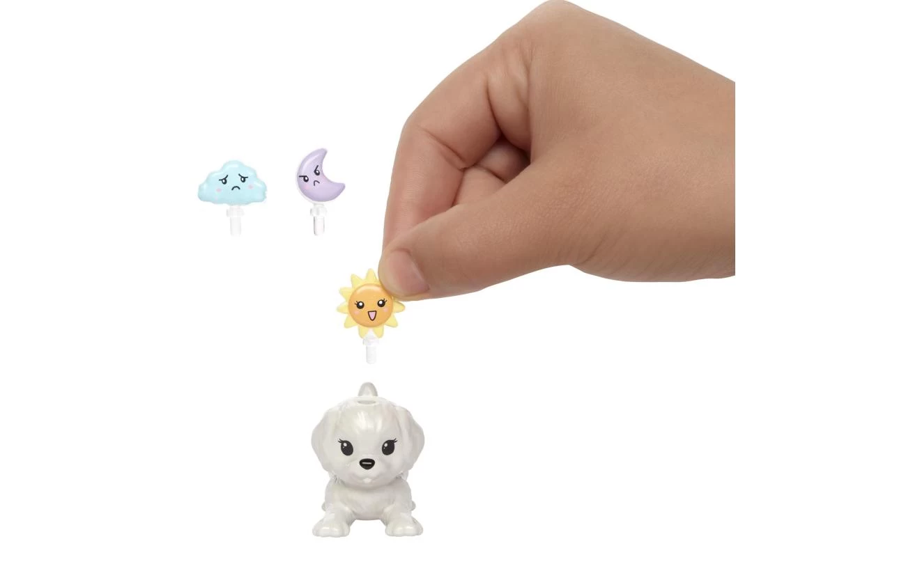 - Naast de Barbie pop (ca. 29 cm) bevat de set een oogmasker en een puppy met 3 verschillende emoticonspeldjes waarmee kid hun stemming kunnen aangeven.