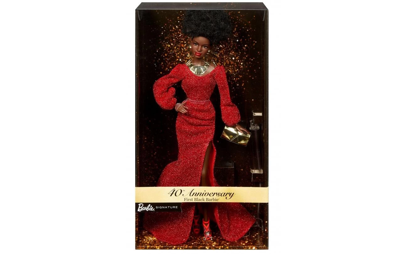 Met dit product viert Mattel het 40-jarig jubileum van het merk. Het design van de prachtige pop is Afro-Amerikaans geïnspireerd. De pop draagt een zeer speciale rode gala jurk. De kleur van de jurk komt er fantastisch uit door de gouden accessoires. Wat je vandaag als een eenvoudig ‘spel met Barbie’ ziet, bereid je in werkelijkheid voor je toekomst. Deze pop wil uitstralen dat Barbie de fantasie bevordert terwijl het de vrije mening en de zin in ontdekking stimuleert.
